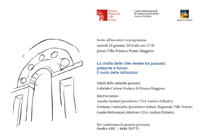 L'Istituto Regionale Ville Venete, in collaborazione con il Centro Internazionale di Studi di Architettura di Andrea Palladio e la Regione del Veneto, invitano all'incontro