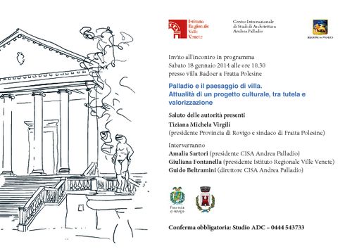 L'Istituto Regionale Ville Venete, in collaborazione con il Centro Internazionale di Studi di Architettura di Andrea Palladio e la Regione del Veneto, invitano all'incontro: